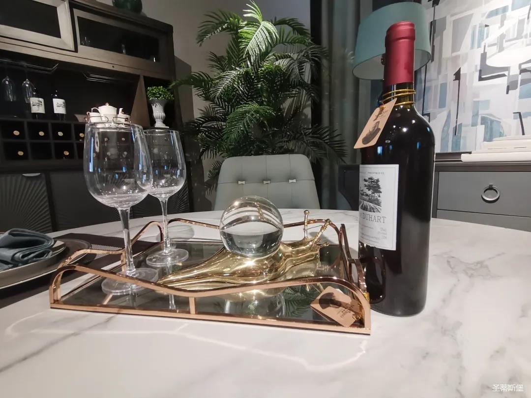 黄铜作为太阳的颜色,它代表着温暖与幸福,也拥有照耀人间、光芒四射的魅力。玻璃水晶球的贝壳,让空间通透自然,更具高贵轻奢的格调。