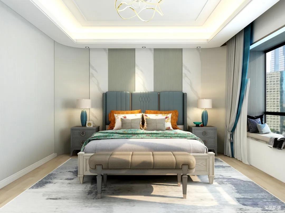空间没有强有力的照明系统,采用无主灯设计,用作辅助光源,让睡眠更放松。
