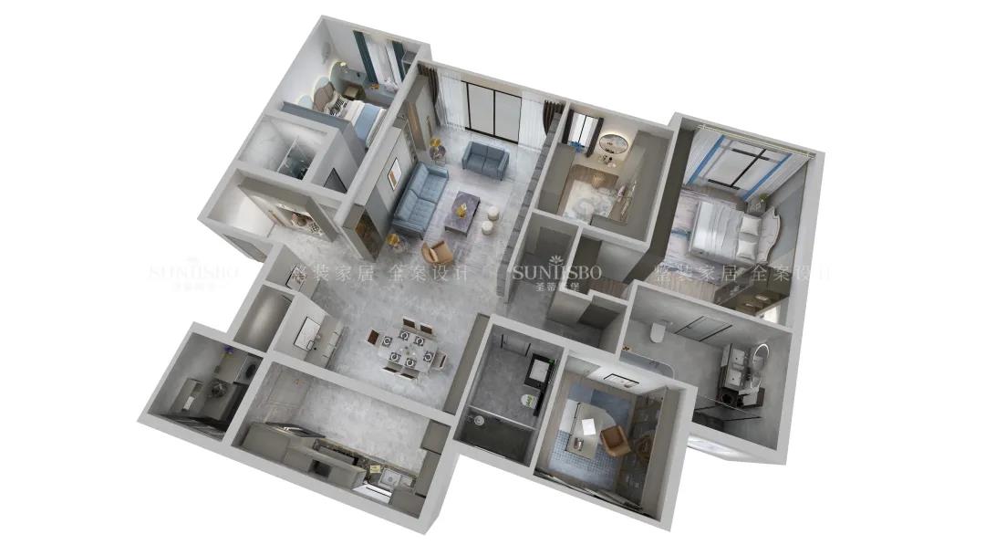 恒大四季上东|147㎡| 时尚简奢|沈阳本案例是一套面积147㎡的三居室,位于辽宁省沈阳市,业主是一位从事绘画工作者,深研过空间与色彩的关系,经过与设计师的沟通交流后,选定了沉静的灰色调来表现空间的宁静与放松。